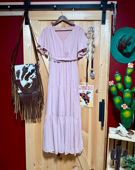 Wrap Tiered Maxi Sundress with Lining in Rose