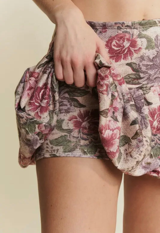 Vintage Floral Print Puff Skort Skirt