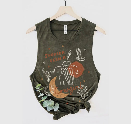 Olive Shoulda Been A Cowgirl Graphic Tank Top