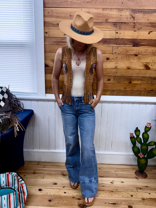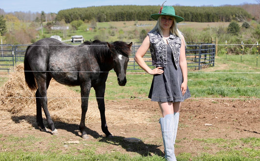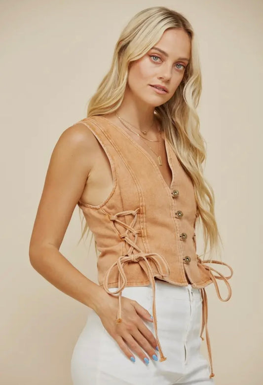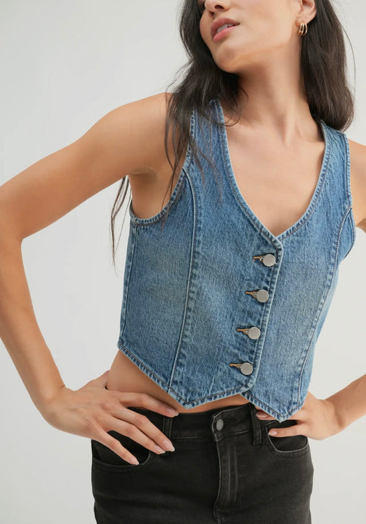 BUTTON UP POLKA DOTS WASHED DENIM VEST