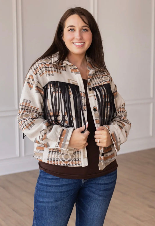 Women's Western Aztec Print Jacket BLACK-BURGUNDY