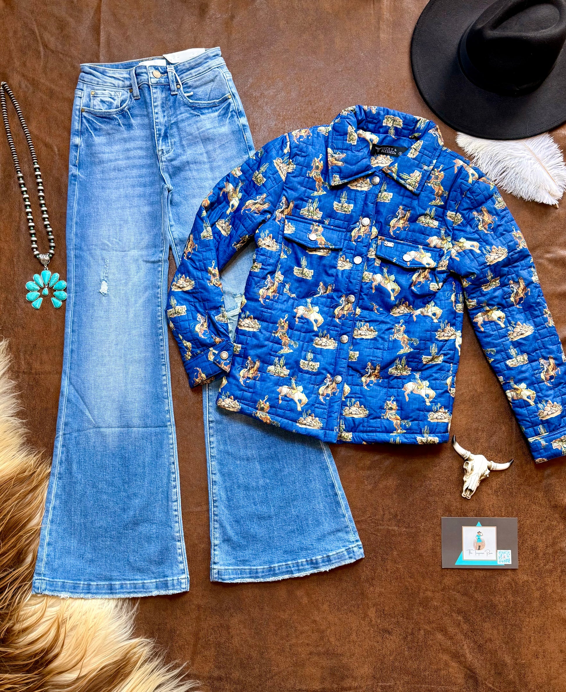 Blue Western Cowboy Desert Printed Quilted Jacket
