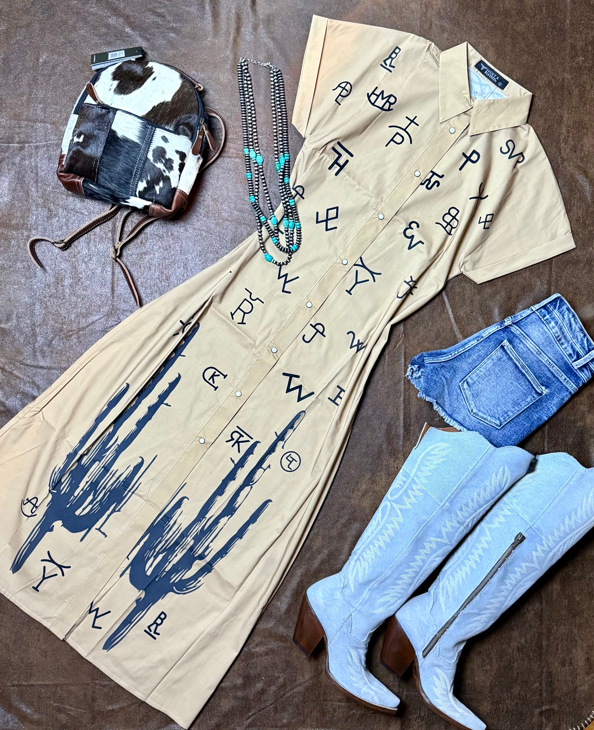 Camel Brand Printed Button Down Duster Dress