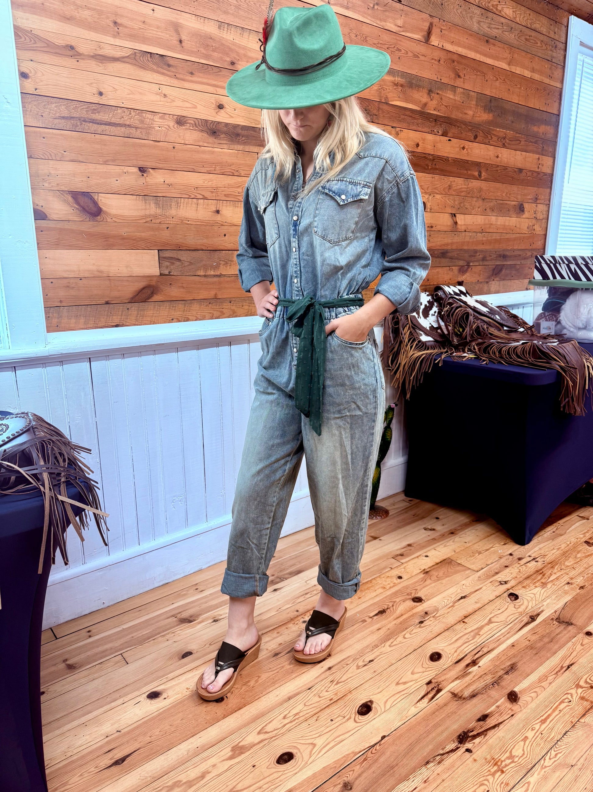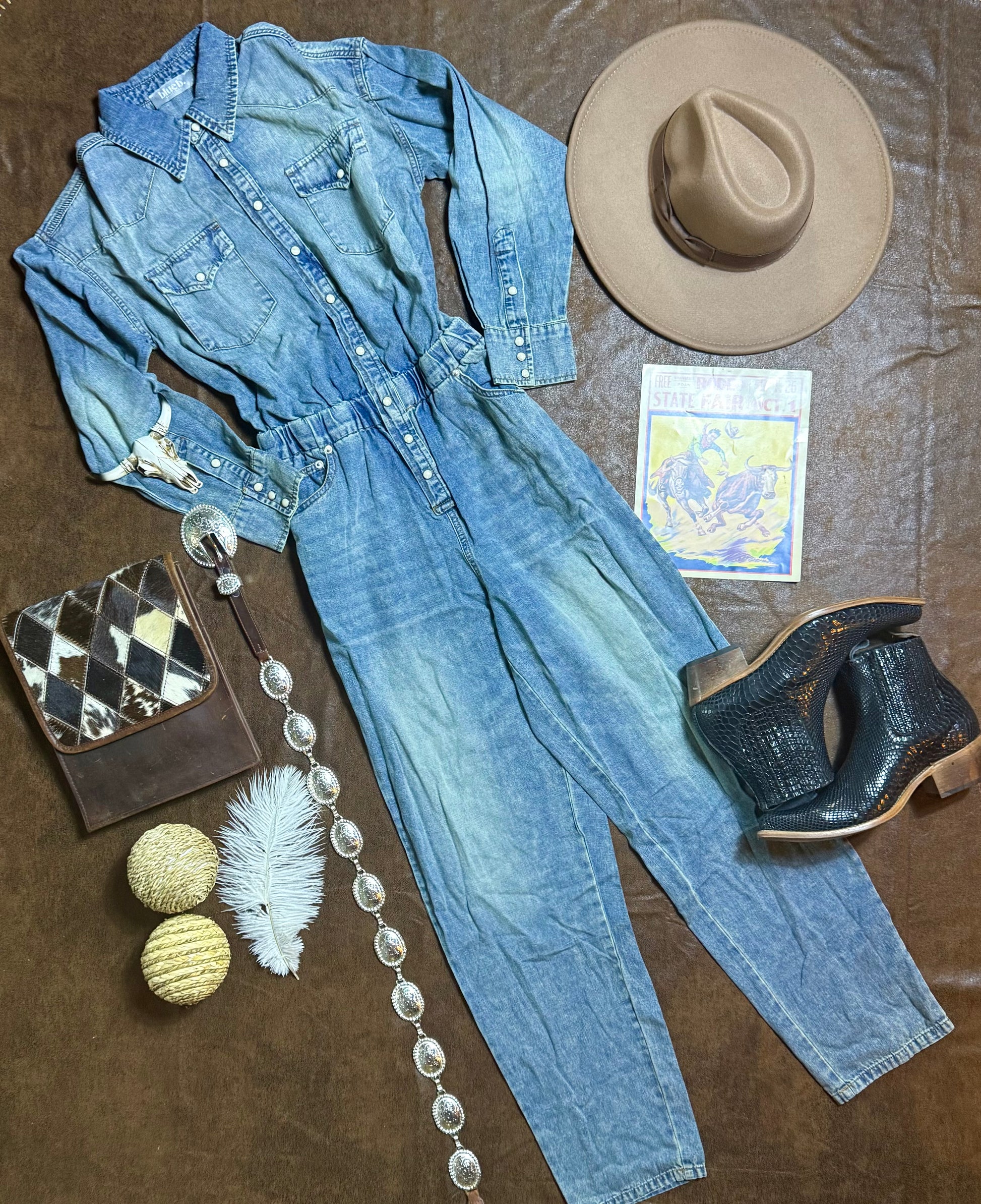 Go all in for denim day in this perfectly faded jumpsuit cut in a roomy, relaxed fit.